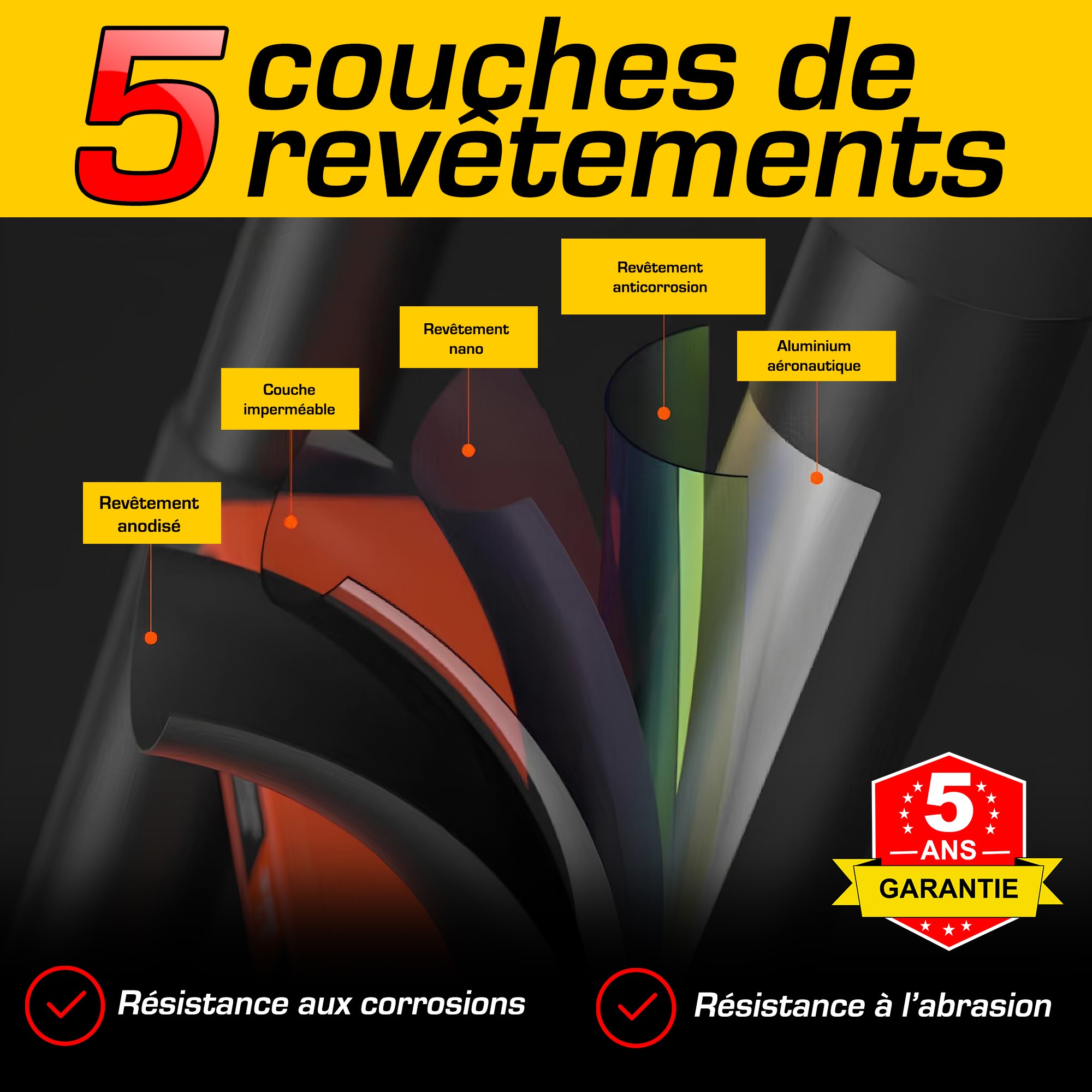 - Ultra robuste et légère, tout en aluminium anodisé 7175T6 avec graphite