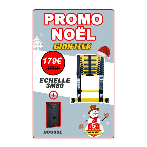 Echelle télescopique 3m80 GRAFITEK avec barres stabilisatrice + Housse