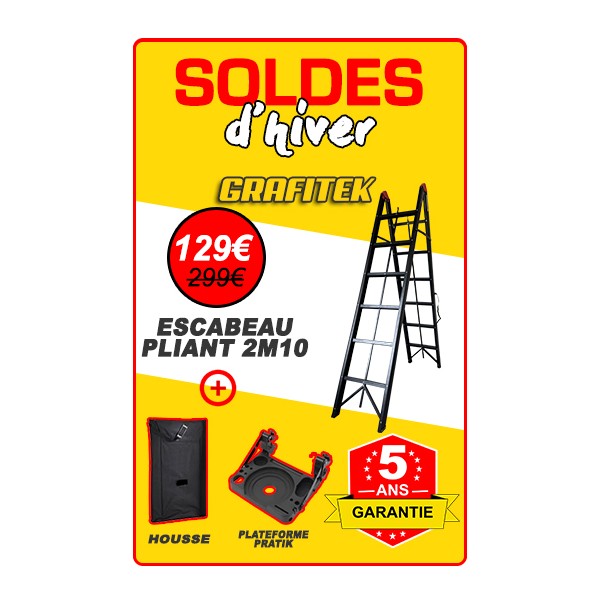 Escabeau pliant 2m10 - 6 marches - avec housse et plateforme PRATIK