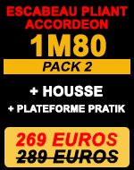 - Le PACK 2 comprend l’escabeau pliant accordéon avec housse et plateforme "PRATIK"