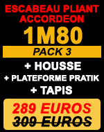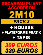 - Le PACK 3 comprend l’escabeau pliant accordéon avec housse, plateforme "PRATIK" et tapis